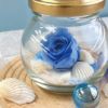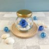 丸い瓶にソーダブルー色のローズと